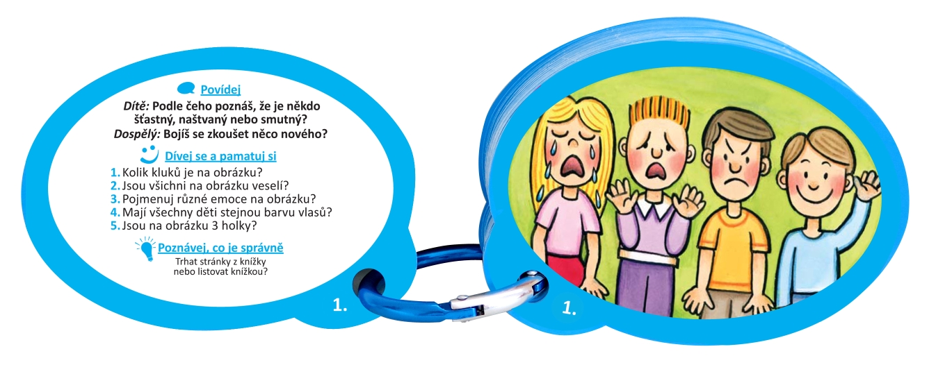 Všechny otázky ve hře jsou vhodně doplněné poutavými barevnými obrázky, aby děti vtáhly do děje a snadněji se mohly rozpovídat