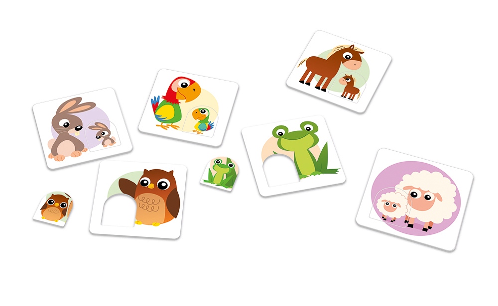 Principem je správně přiřadit dvojice zvířátek, které k sobě patří. Tím děti rozvíjí logiku, hmat a poznávají barvy a zvířátka.