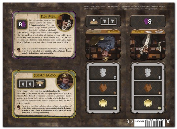 Elon Audia - začínáte bez kopáčů a míchaček, namísto toho získáte 8 kopáčomíchaček. Tyto speciální stroje můžete používat jako žolíky – počítají se jako kopáče i jako míchačky. Stroje smíte ve hře stále nakupovat v továrně na stroje nebo je získávat různými herními efekty. Kopáčomíchačky smíte investovat na konstrukčním kole, a to dokonce i v kombinaci s běžnými stroji. Dokonce smíte kopáčomíchačkami platit náklady na externí kontrakty – ale tím o ně trvale přijdete.