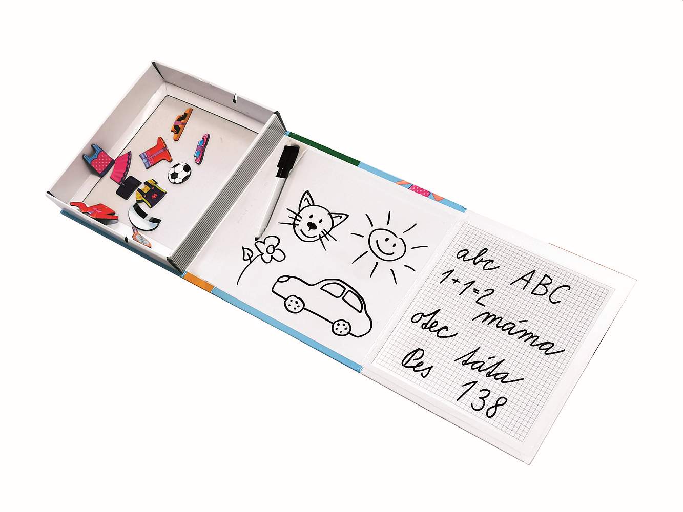 Všestranná hra, která povzbudí děti od 4 do 8 let ke kreativitě, aranžování, kreslení a psaní. Psaní, mazání a skládání magnetických obrázků - vše v jedné sadě. Skvělý trénink psaní písmenek, čísel a spousta volné plochy na malování mazací fixkou. Rozvíjí jemnou motoriku a představivost.