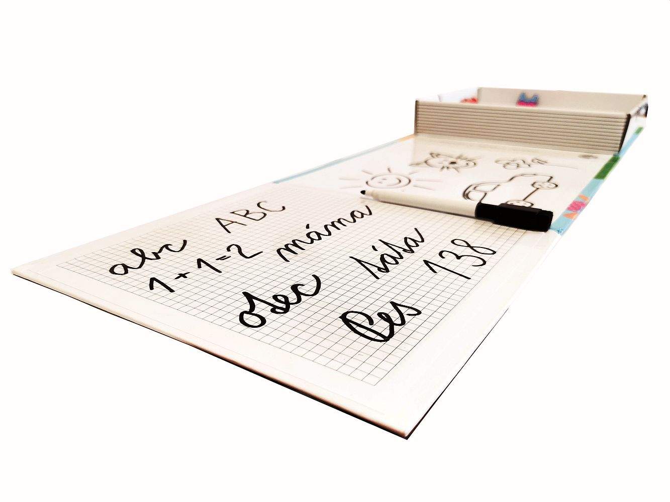 Magnetická deska je dost velká na dotvoření příběhu vlastními obrázky, popisky, nebo také k tréninku psaní písmen, slov či vět a též k psaní čísel a jejich počítání.