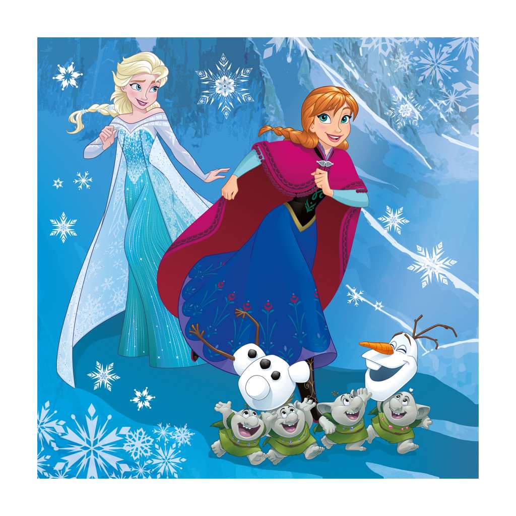 Umožněte dětem prožívat zimní radovánky za každého počasí. Ochotně se k nim přidá pohádková partička z animovaného příběhu Frozen z dílny Walta Disneyho. Na třech různých puzzle se s ratolestmi budou smát princezny Elsa a Anna, sněhulák Olaf, sob Sven a kamarádský Kristoff. Stavěním jednotlivých obrázků si dítka procvičí motoriku, fantazii i schopnost soustředit se.