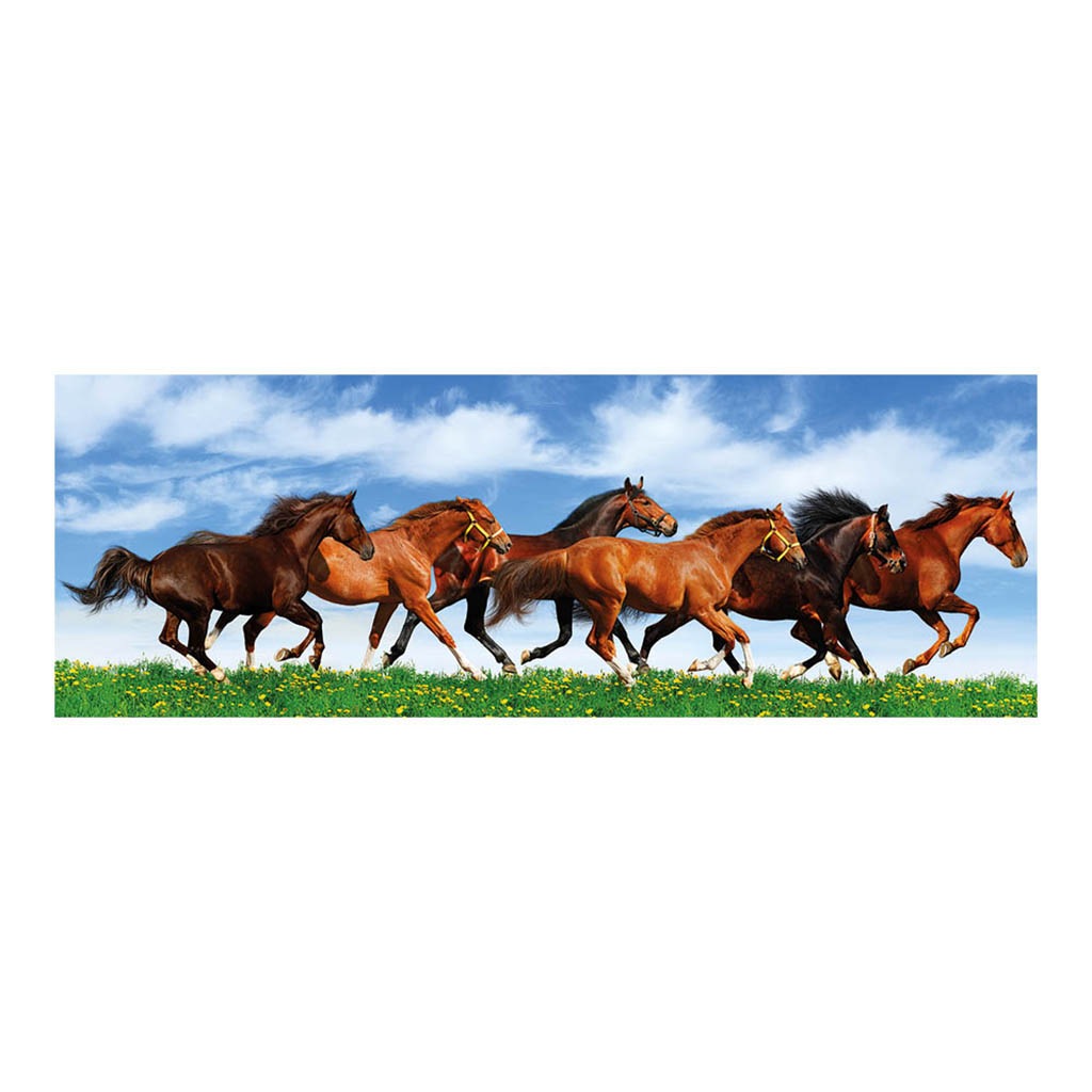 Tohle stádo koní si váš potomek sice neosedlá, ale i tak si s ním užije spoustu legrace. Při hledání a spojování 150 dílků panoramatického puzzle zapojí svou fantazii a pořádně zaměstná svou bystrou hlavičku. Složitostí i rozměrem se skládačka hodí pro školáky od 6 let, složená fotografie ale zaručeně učaruje i dospělým.