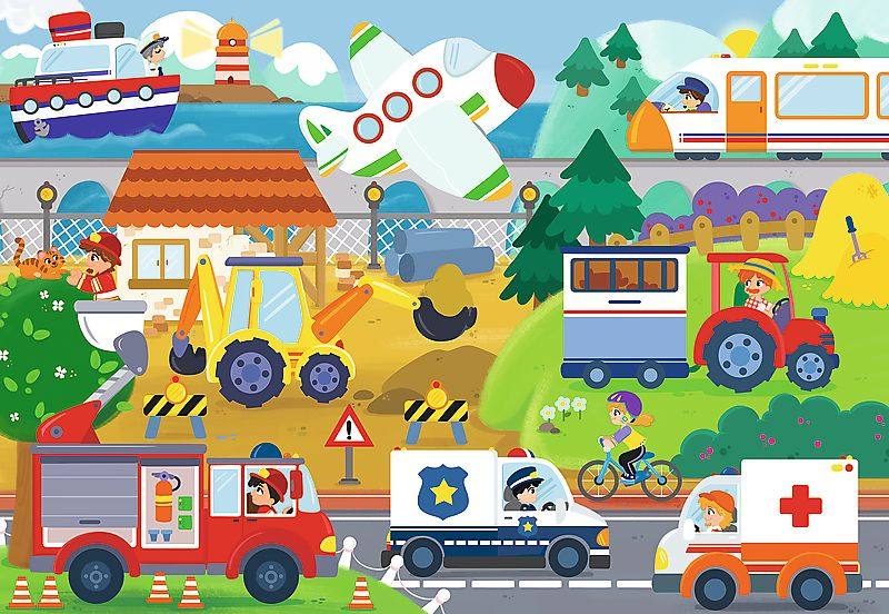 • Puzzle s otvíracími okénky - Dopravní prostředky (36 dílků)