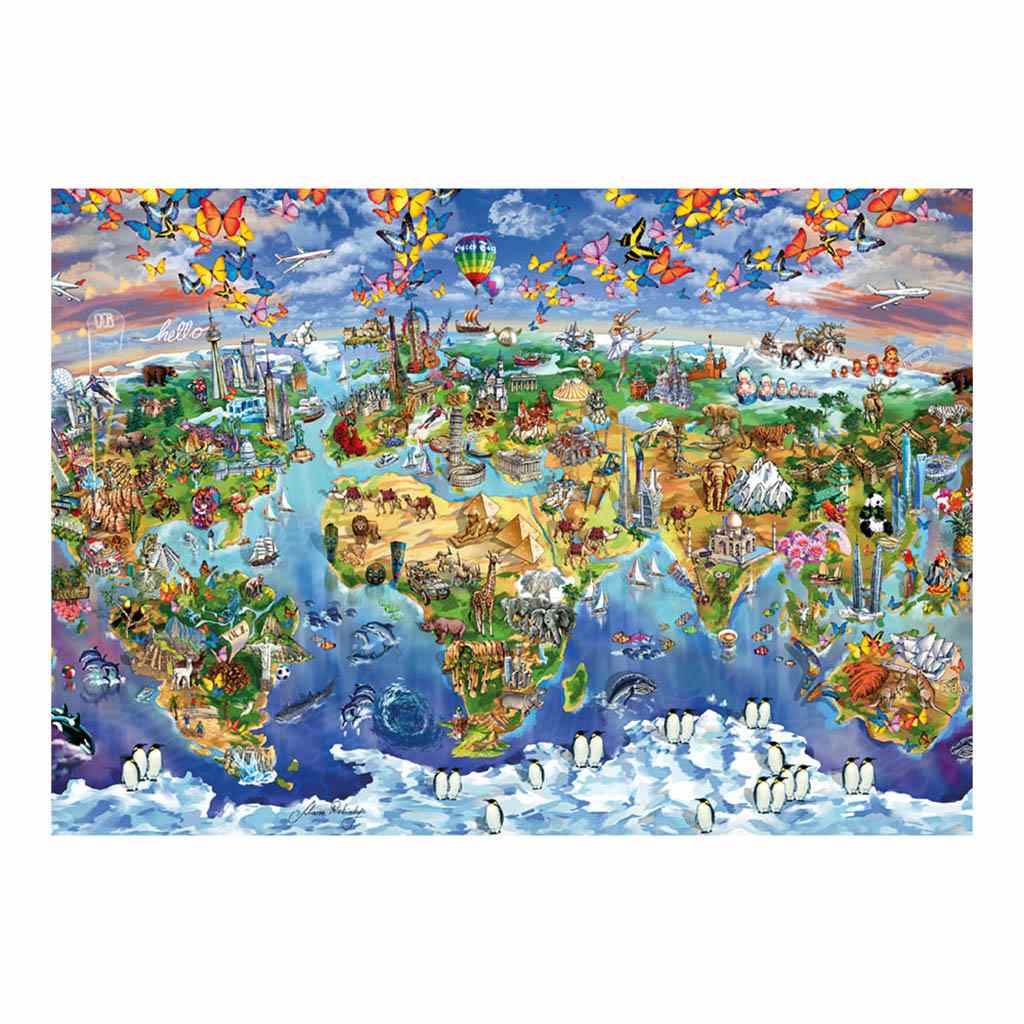 Na otázku, kdo stvořil svět, se odpovídá těžko. Ovšem až budete chtít vědět, kdo ho složil, vaše dítko se vám rádo pochlubí samo. Na sestavení všech kontinentů i vodních ploch mu bude stačit 300 dílků puzzle. Skládání jde snadno díky extra velkým kostkám. Děti si navíc při hraní procvičují fantazii a rozvíjí pozornost a trpělivost.