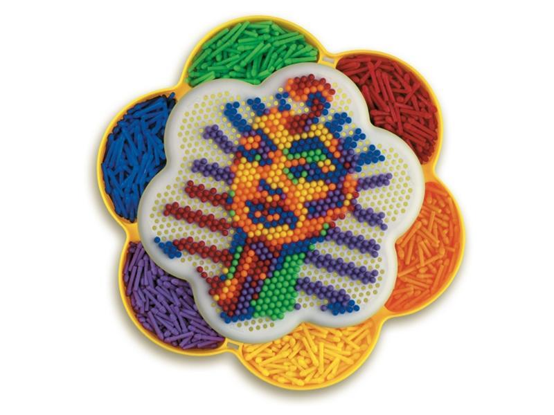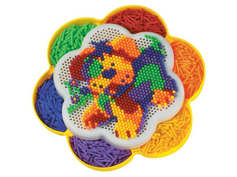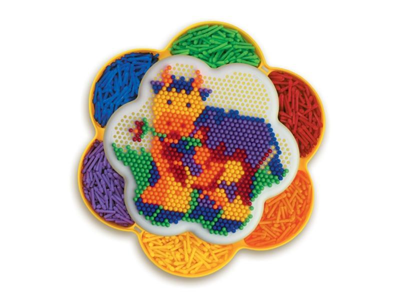 Souprava rozvíjející dětskou motoriku, tvořivost a fantazii se skládá z hrací desky a kontejneru ve tvaru sedmikrásky a 900 kolíčků s hlavičkami o průměru 5 mm. Vyrobeno z plastů špičkové kvality. Pro děti od 4 let.