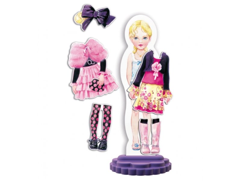 S Fashion Design si holčičky užijí skvělou zábavu při zkoušení řady nejrůznějších stylů na našich magnetických modelkách – třech veselých sestřičkách, z nichž každá se vyznačuje svým osobitým vzhledem. Stejně jako skutečné návrhářky mohou holčičky podle svého módního vkusu hravě kombinovat úžasnou paletu oděvů nejrůznějších barev a vzorů se spoustou doplňků. Každá panenka má svůj stojánek a její dvě hrací magnetické strany s dvěma různými postoji a účesy umožňují dlouhé hodiny tvořivé zábavy.