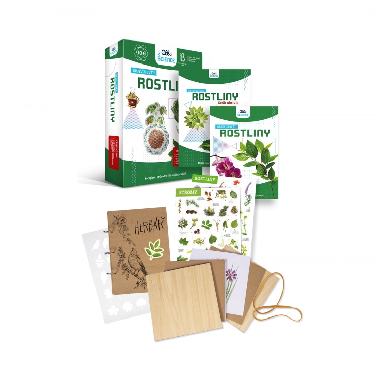 Součástí sady je také lis na květiny a herbář, který si sami ozdobí pomocí šablonek a samolepek.