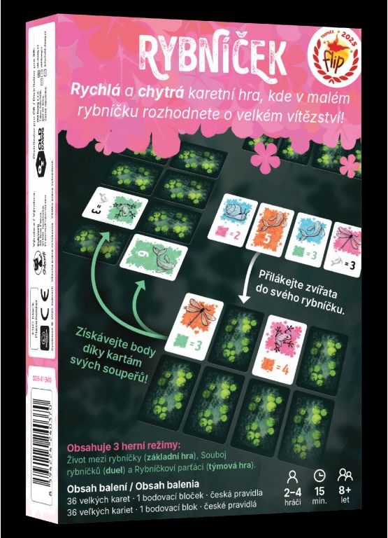 Rybníček je svižná a chytrá karetní hra, ve které tvoříte vlastní vodní ekosystém pomocí karet pokládaných tak, aby vám přinesly co nejvíce bodů. Neobodujete si totiž jen karty z vašeho rybníčku, ale i z rybníčků sousedů. Cílem je tedy vytvořit dokonale fungující společenství s nejvyšším počtem bodů.