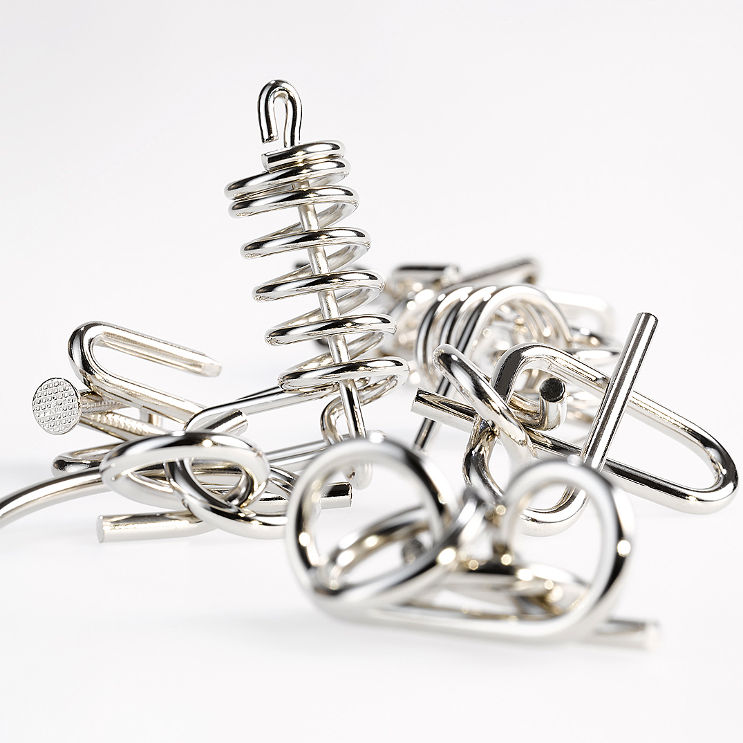 Sada kovových hlavolamů ve čtyřech různých provedeních. Každá ze sad nabízí deset jiných kovových hlavolamů různé náročnosti, které dokáží potrápit vaši hlavu i ruce na delší dobu.