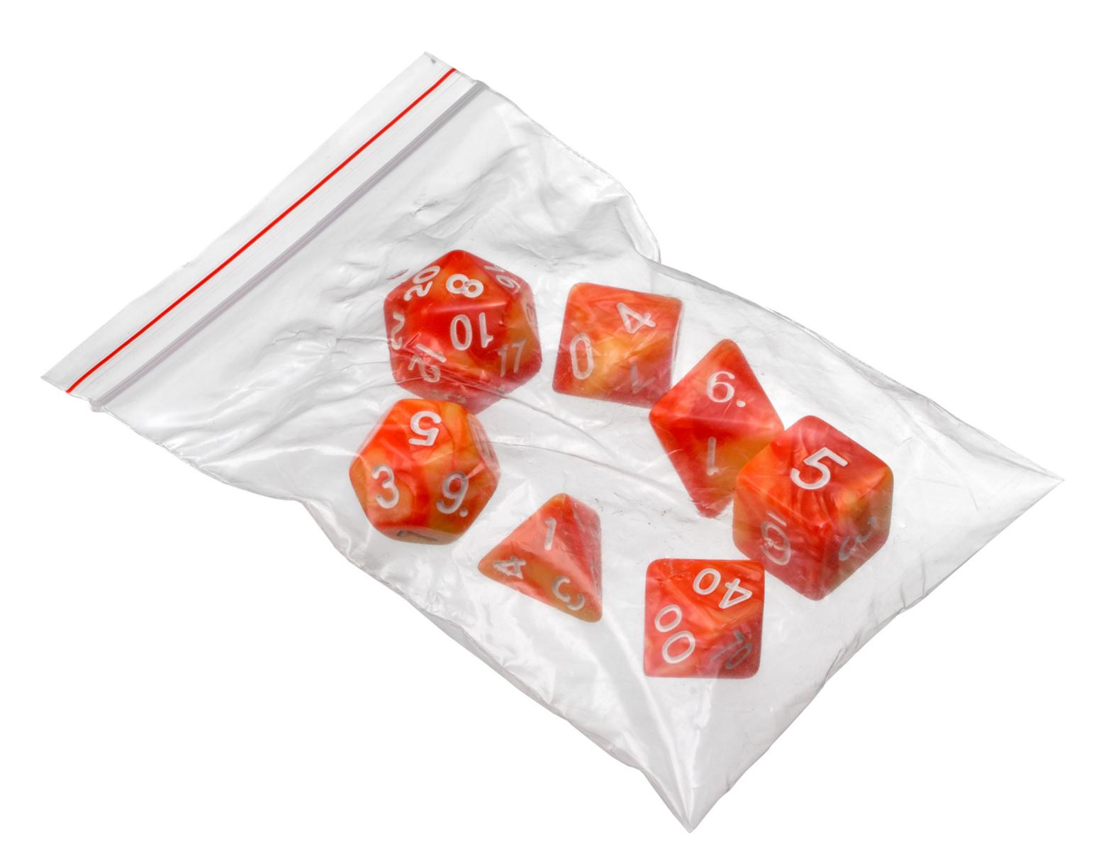 Sada 7 plastových kostek s čísly v barevném provedení - oranžová.