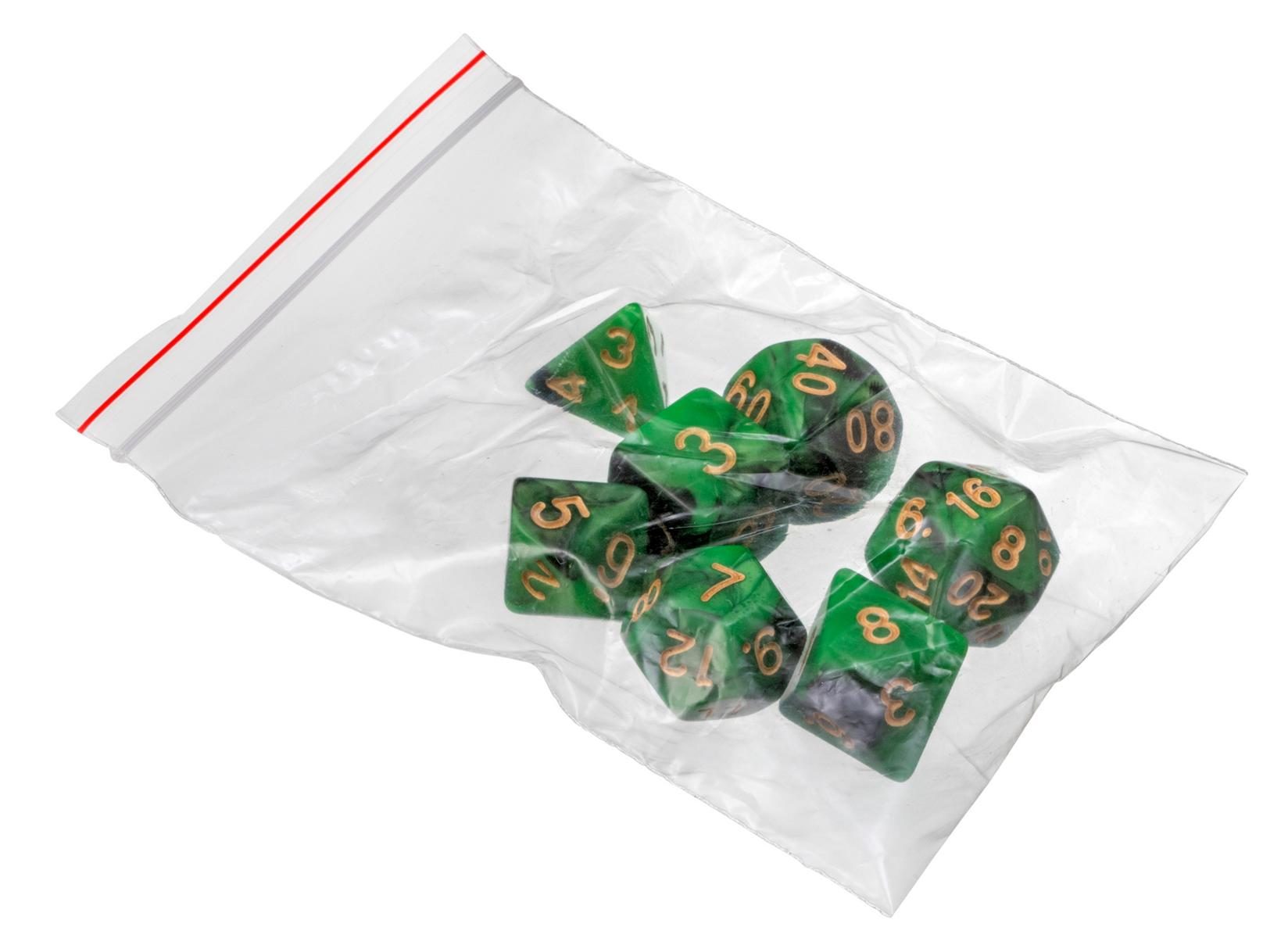 Sada 7 plastových kostek s čísly v barevném provedení - zelená.