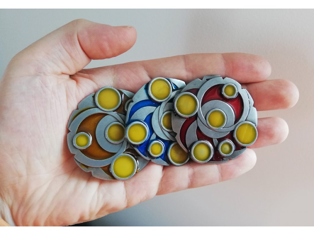 Neoriginální kovové mince pro karetní hru Keyforge.