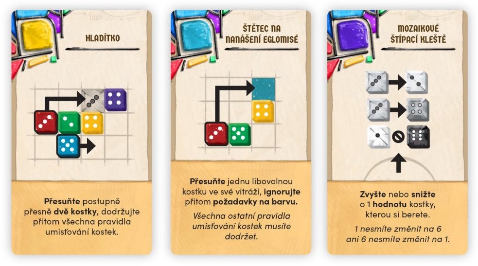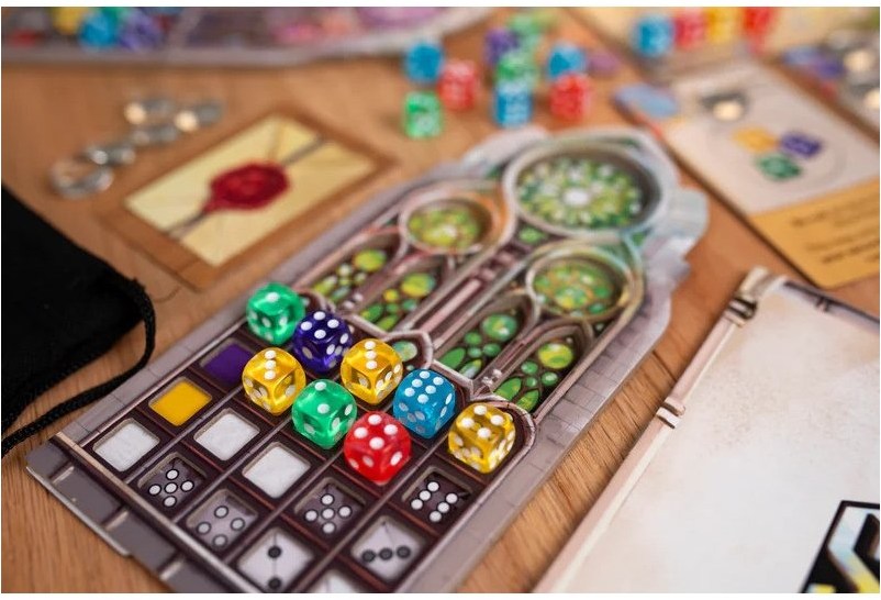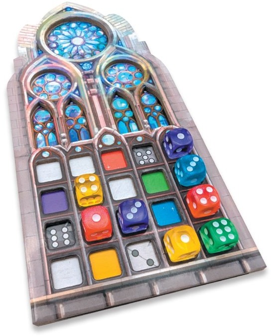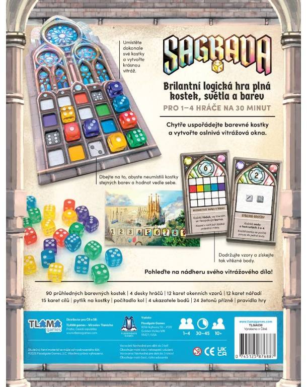 Ve hře Sagrada jsou vaše skleněné tabulky znázorněny barevnými kostkami. Máte 10 kol na to, abyste si jednu po druhé vybrali kostky a umístili je do svého okenního rámu. Dávejte ale pozor, aby vedle sebe nikdy nebyly dvě stejné barvy nebo hodnoty kostek. Splňte cíle a vytvořte harmonické mistrovské dílo barev a světla!