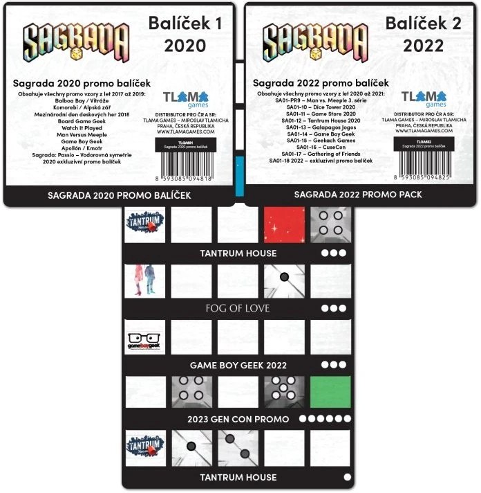 Doplňte svou sbírku o všechny Sagrada promo karty vydané až do vydání remasterované edice v roce 2026! Tento balíček obsahuje 29 promo karet vitráží, které byly k dispozici pouze na festivalech, na kanálech některých recenzentů nebo byly součástí balení jiné hry. Dále je tu jedna karta vydaná výhradně v Polsku a dvě, které najdete jen v tomto balíčku!