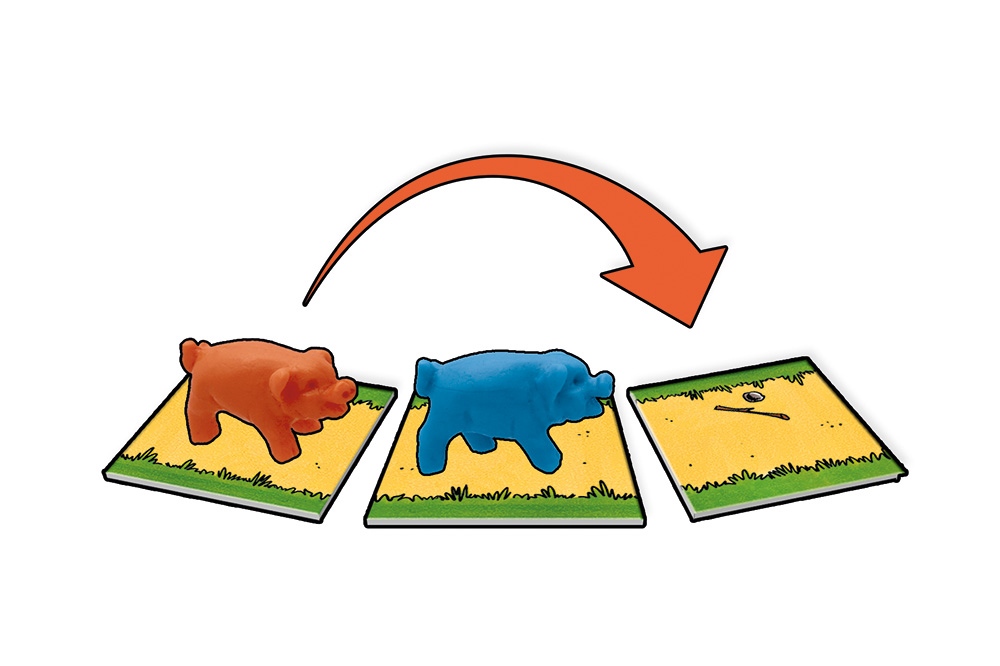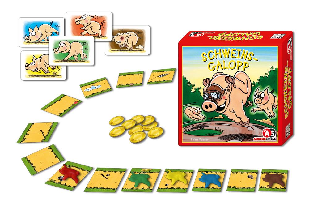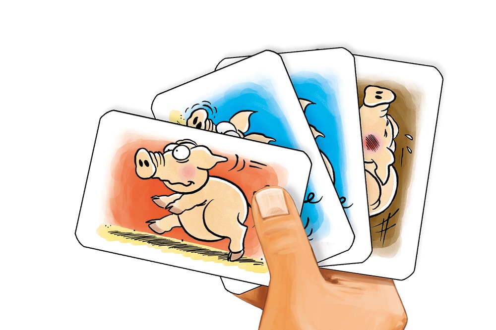40 závodních karet (8 karet v 5 barvách závodních prasátek)