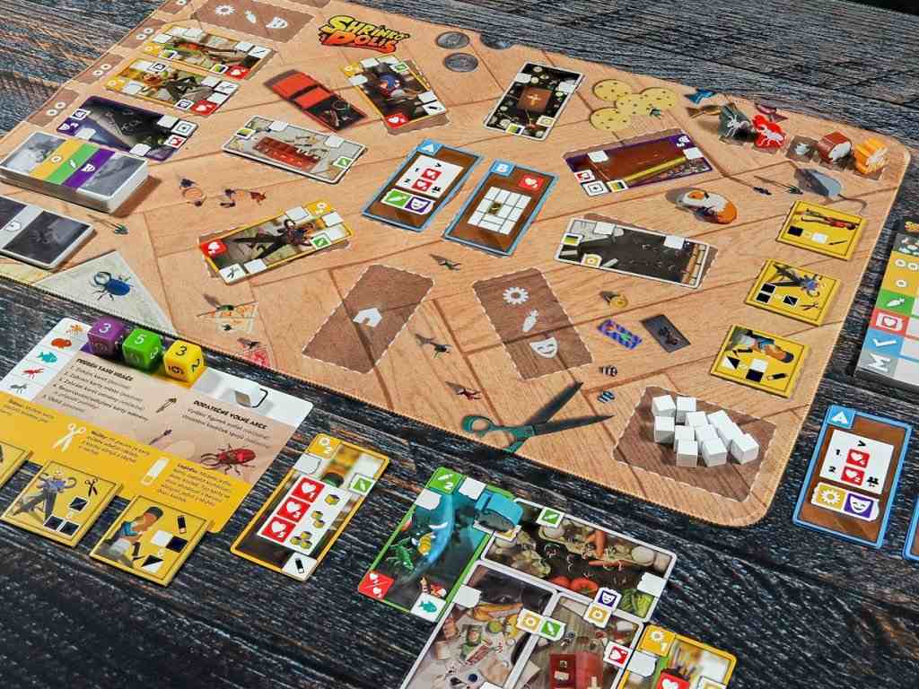 Spoje mezi kartami vám přinášejí zdroje, vítězné body nebo nové možnosti. Po pěti kolech se vše sečte včetně karet úkolů a plánů, které přinášejí body navíc. Ten, kdo má nejvíce bodů, se stává starostou Shrinkopolis!
