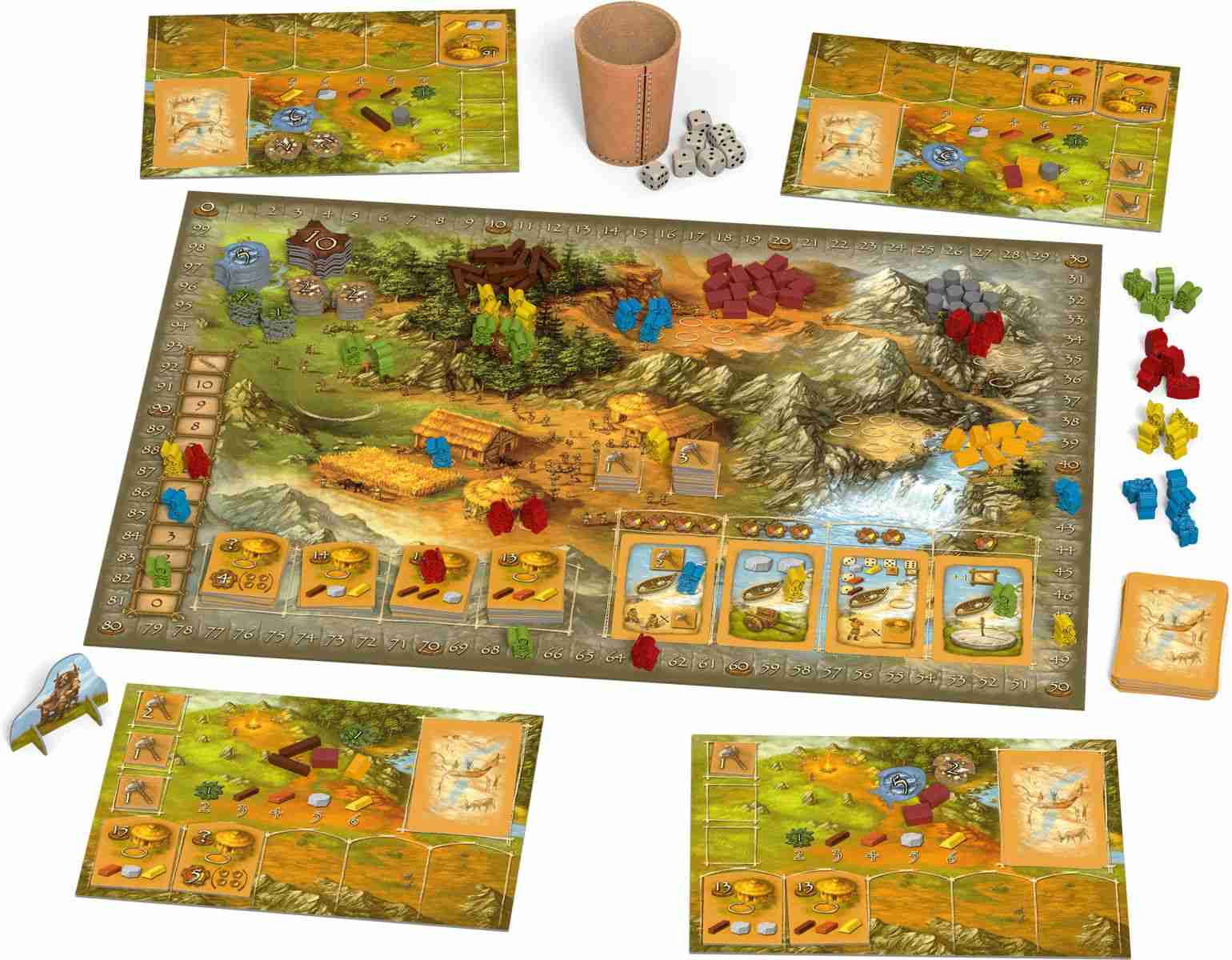 Budovatelská desková hra. Doba kamenná je doba kamenná. A rozhodně to není doba jednoduchá. Nejdůležitějším úkolem vašeho kmene je obstarat dostatek jídla pro všechny své členy. A proto je potřeba vyrazit na lov, a nebo alespoň vypěstovat obilí na prvních zoraných polích. Civilizace se pomalu začíná rozvíjet, a aby se mohla rozvíjet dále, je třeba natěžit dostatek dřeva, jílu, kamene a také zlato ve zlatonosné řece. Pak můžete dále rozšiřovat vesnici, získávat kvalitnější nástroje a další civilizační výhody.