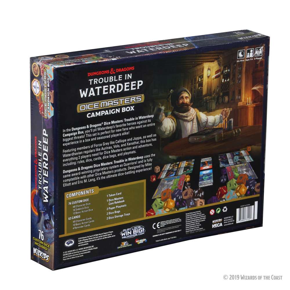 Featuring more than a dozen characters (and their dice!), the Dungeons & Dragons Dice Masters: Trouble in Waterdeep Campaign Box will be sure to deliver an epic experience!