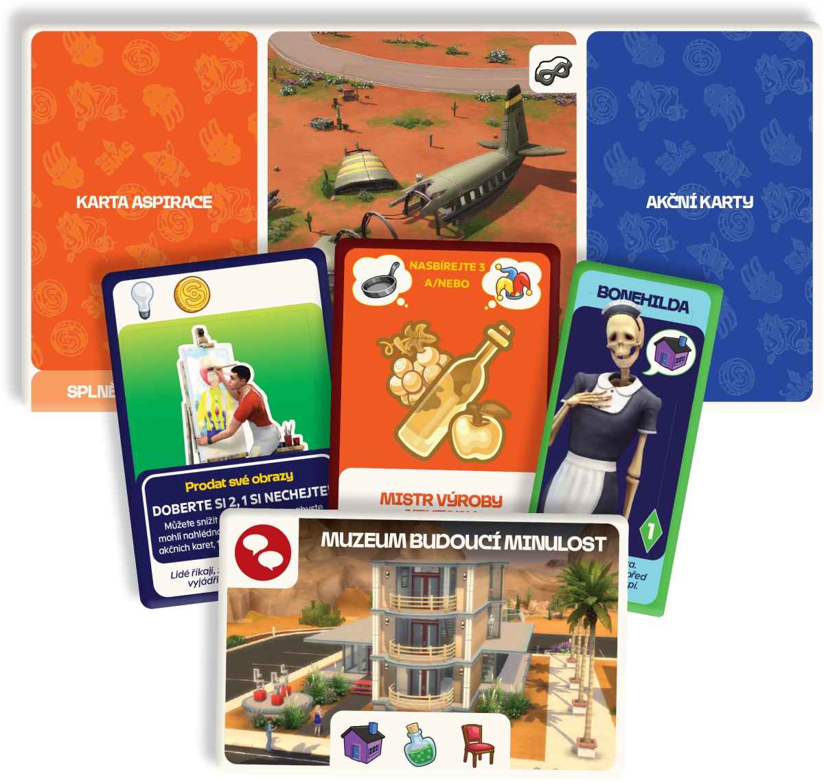 - Karty ikonických simíků oživují známé postavy, jejichž efekty dokážou výrazně zamíchat průběhem hry a změnit vaše plány.