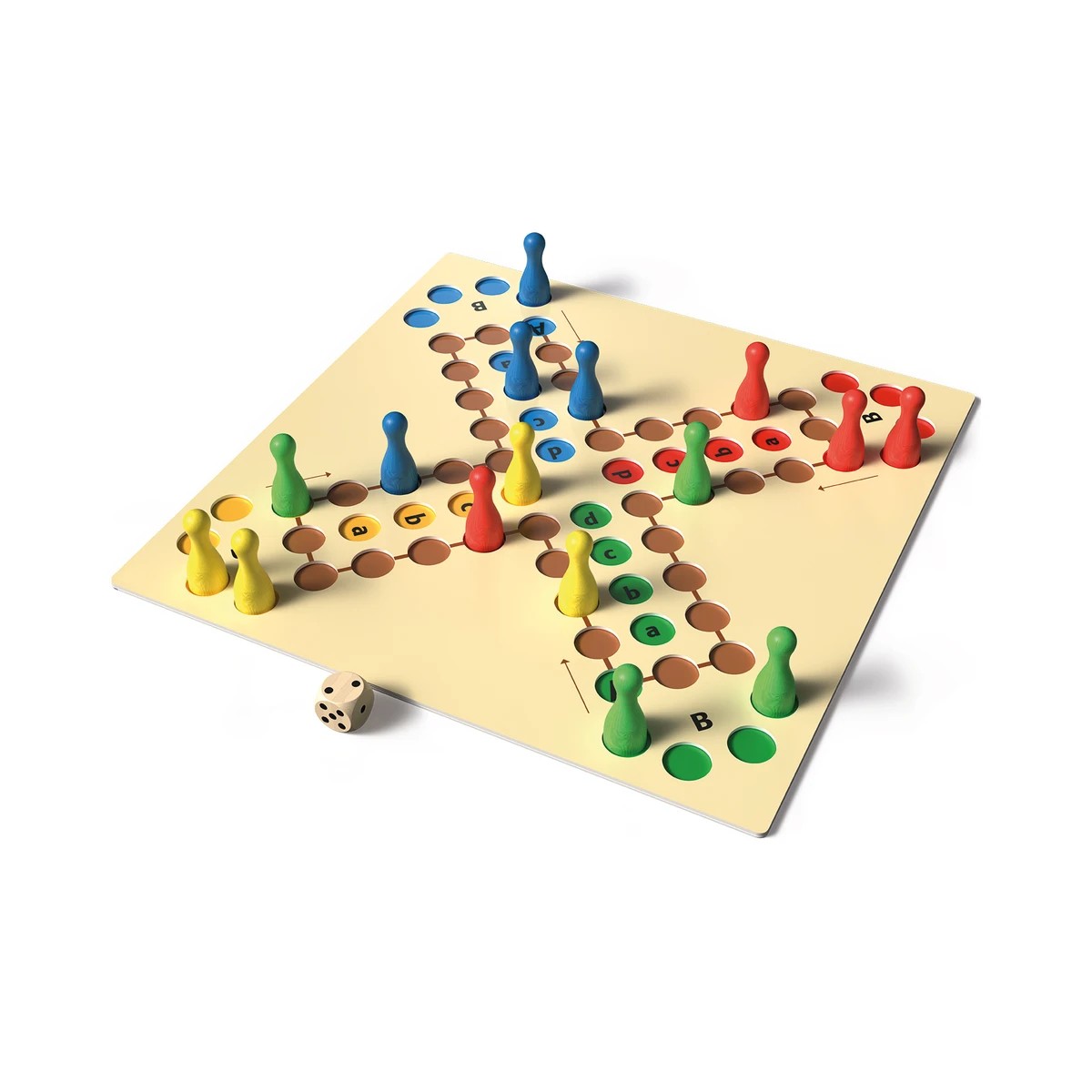 Klasická oblíbená desková hra v netradičním podání. Kvalitní zpracování, velký dvouvrstvý herní plán se zapuštěnými políčky, velké dřevěné figurky, které dobře padnou do ruky i přehledná kostka.