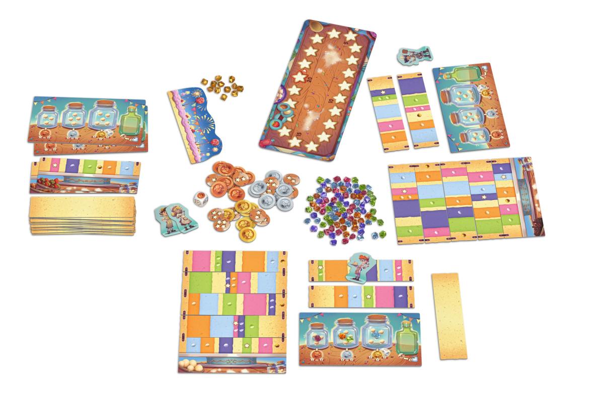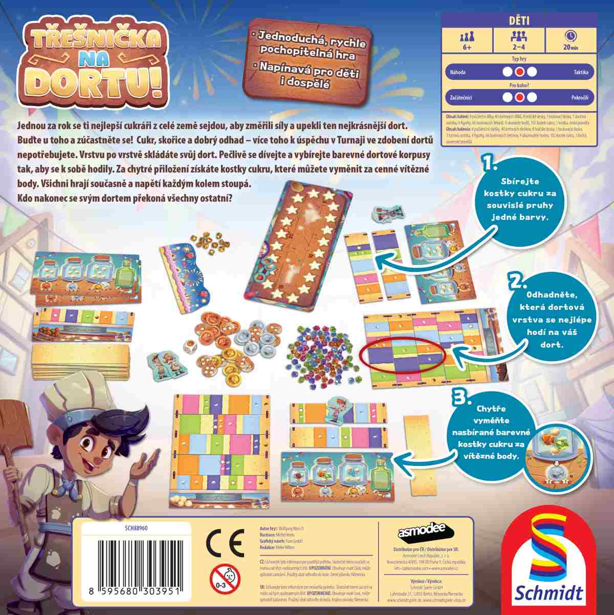 - Díky barevnému zpracování, výrazným komponentům a atraktivnímu vizuálu působí hra na stole doslova jako skutečný dort plný cukrové fantazie.