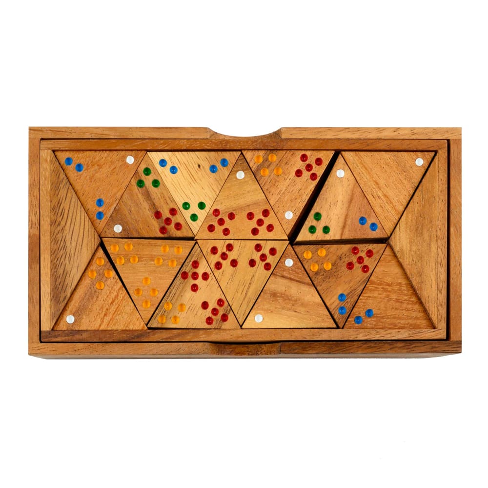 56 trojúhelníkových dřevěných kamenů
