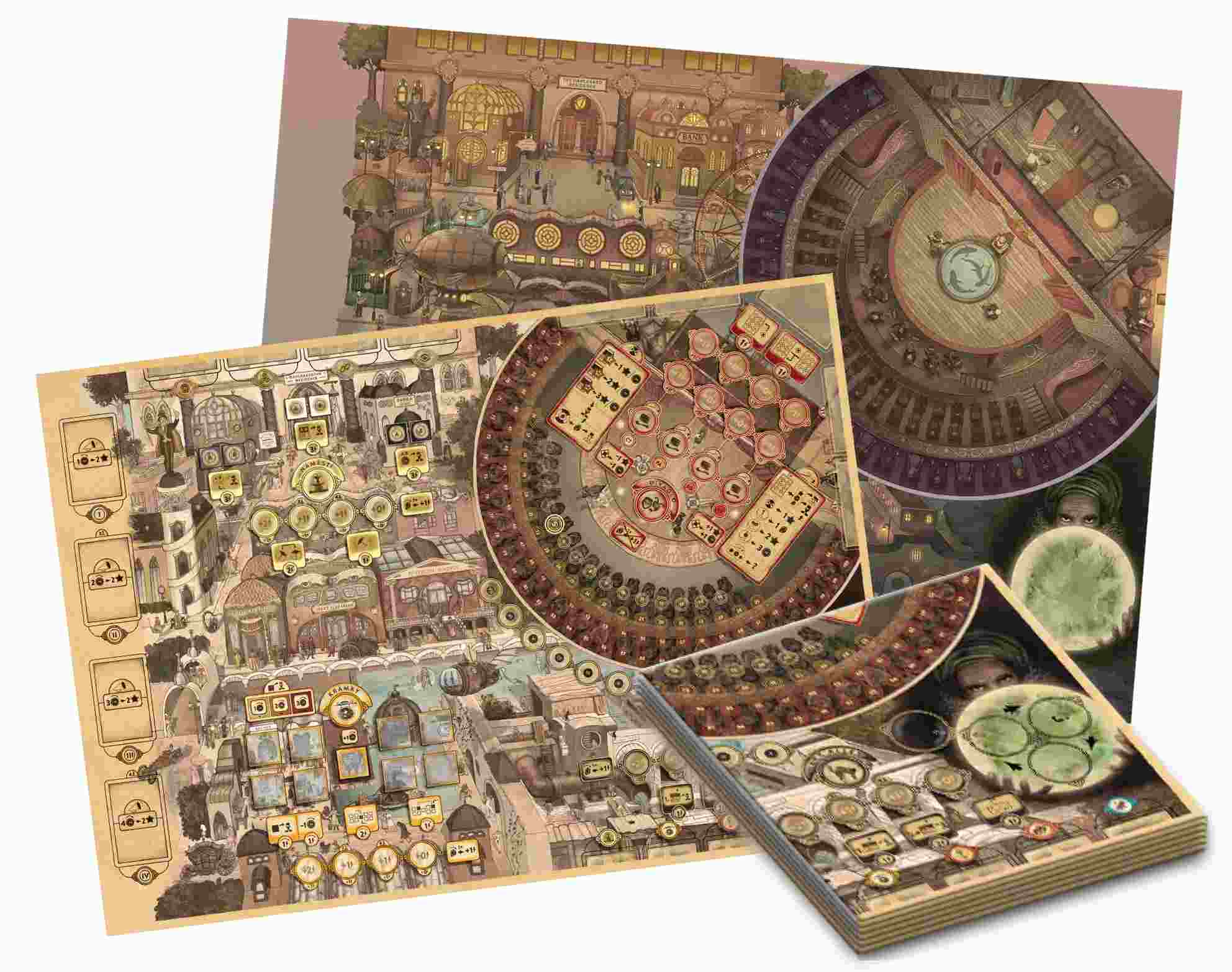 Pomocí mechanismů worker placement a simultánního výběru akcí získávají iluzionisté a jejich týmy pomocníků – inženýr, asistent, manažer a několik učňů – plány a komponenty pro stále složitější kouzla, rozšiřují svůj tým a připravují představení. Navštěvují přitom lokace na hlavní herní desce, která zobrazuje městskou scenérii konce 19. století.