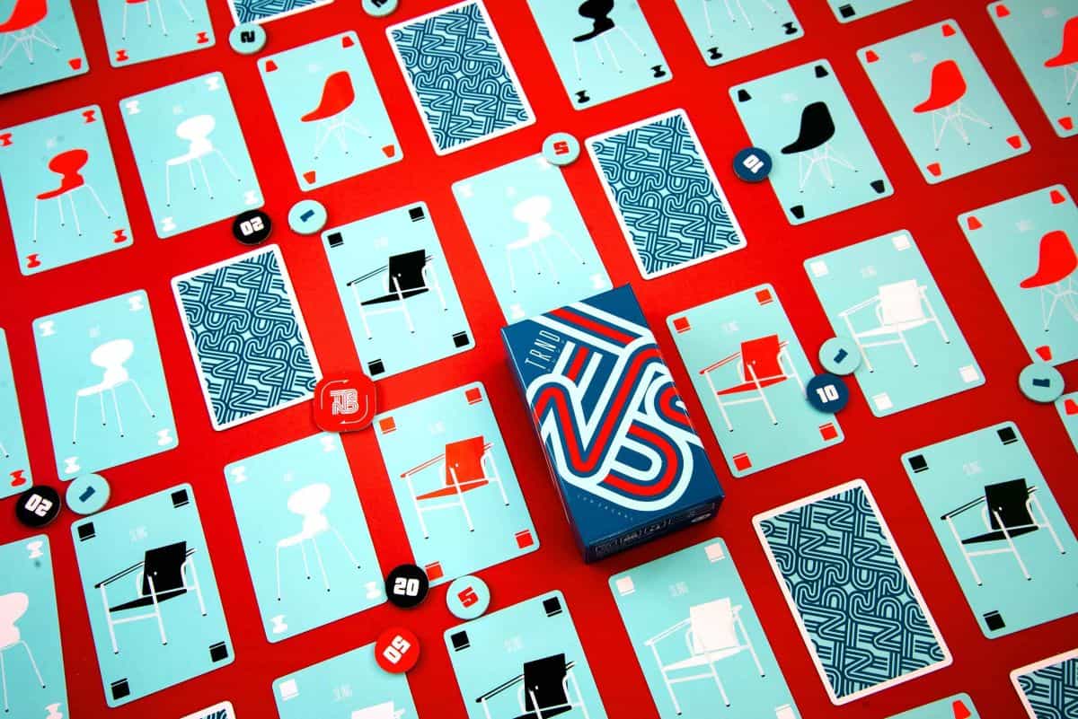 "TRND" is a card game played with nine types of cards, each showing one of three shapes and one of three colors. On your