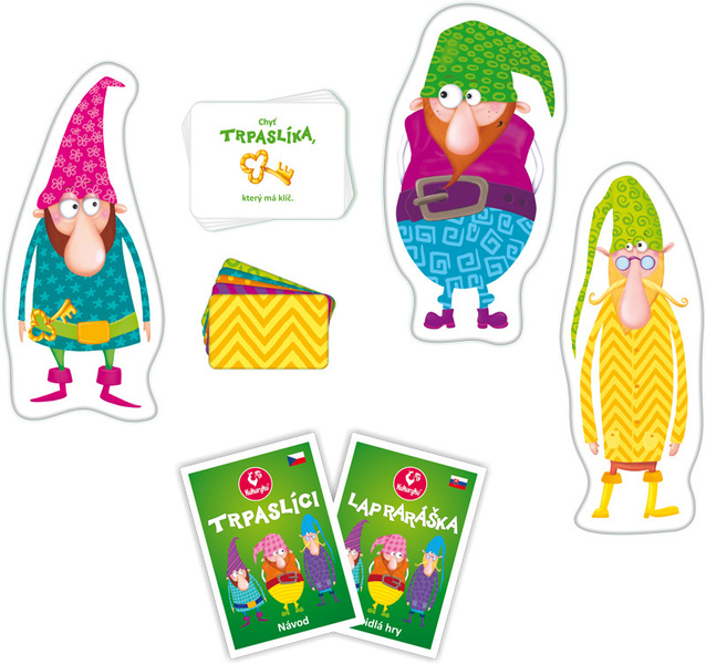 Tři trpasličí bratři zvou děti k zábavě a učení. Děti se během hry učí rozeznávat barvy, tvary, vzory, poznávat a porovnávat, věnovat pozornost detailům a cvičit vnímavost a postřeh. Hru lze tvořivými způsoby využít doma i v mateřských školkách. Pomáha pochopit základní matematické principy sad. Návod obsahuje pravidla pro tři základní hry, ale s trochou představivosti si jistě vytvoříte i hry vlastní.