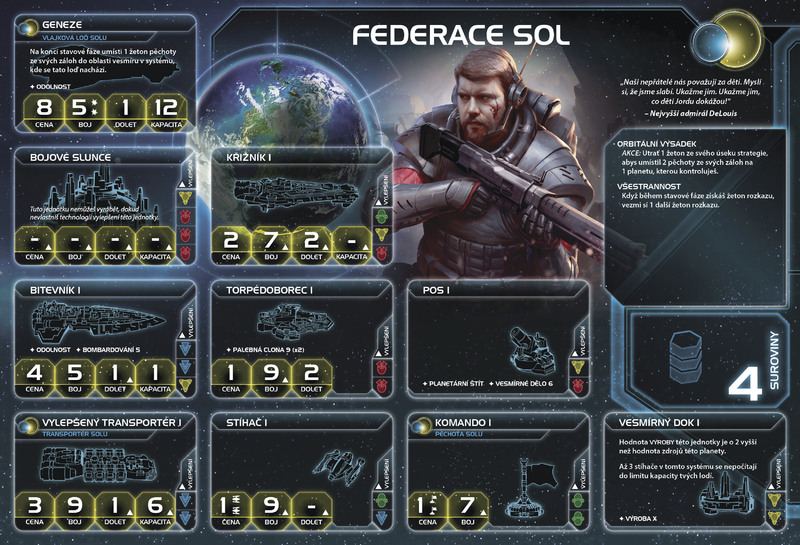 Zvol si komu pomůžeš v dlouhém politickém a vojenském konfliktu. Každá rasa má jiné zdroje a jiné válečné i politické předpoklady. Herní plán se skládá z hexových polí s vyznačenými planetami, asteroidy atd.