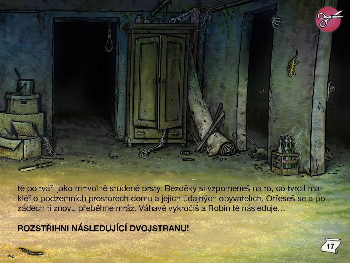 Neuvážená sázka vás za jedné temné noci zavede do starobylého venkovského sídla, opředeného nejrůznějšími strašidelnými pověstmi. Čeká vás pořádná zkouška odvahy! Neohroženě vstoupíte do útrob domu, když tu se pod vámi propadne podlaha. Ocitáte se v temném sklepení. Kolem se ozývají tajemné zvuky... Opravdu vás nešálí sluch? A jak se odtud proboha dostanete? Jste vězněm ve strašidelném domě – dokážete odtud vyváznout se zdravou kůží?