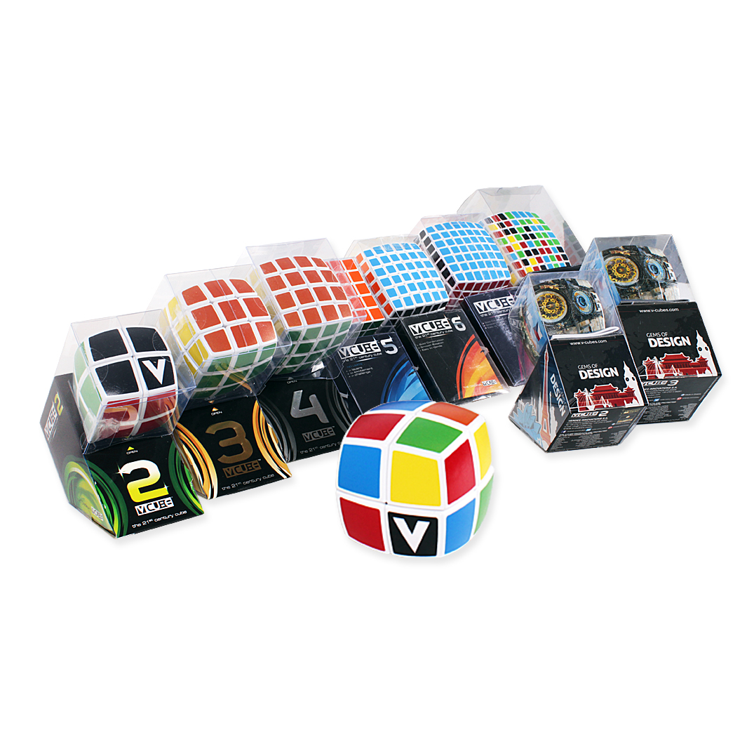 Pro děti a začátečníky jsou určeny kostky o velikostech 2x2 a 3x3, zkušenější řešitelé hlavolamů můžou začít na verzích se 4x4 nebo 5x5. Pro opravdové experty jsou potom poslední tři verze V-Cube kostek. Kostka 6x6 nabízí  1,57 x 10116 možností složení, největší kostka 8x8 potom 7,4 x 1049 možností složení - to už vyžaduje značné úsilí, soustředění a strategické uvažování.