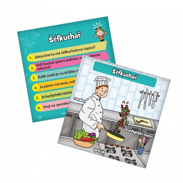 Vaším cílem bude za 10 minut nasbírat co nejvíce karet z 55 bohatě ilustrovaných karet o tom nejzajímavějším, co je s povoláními spojeno.