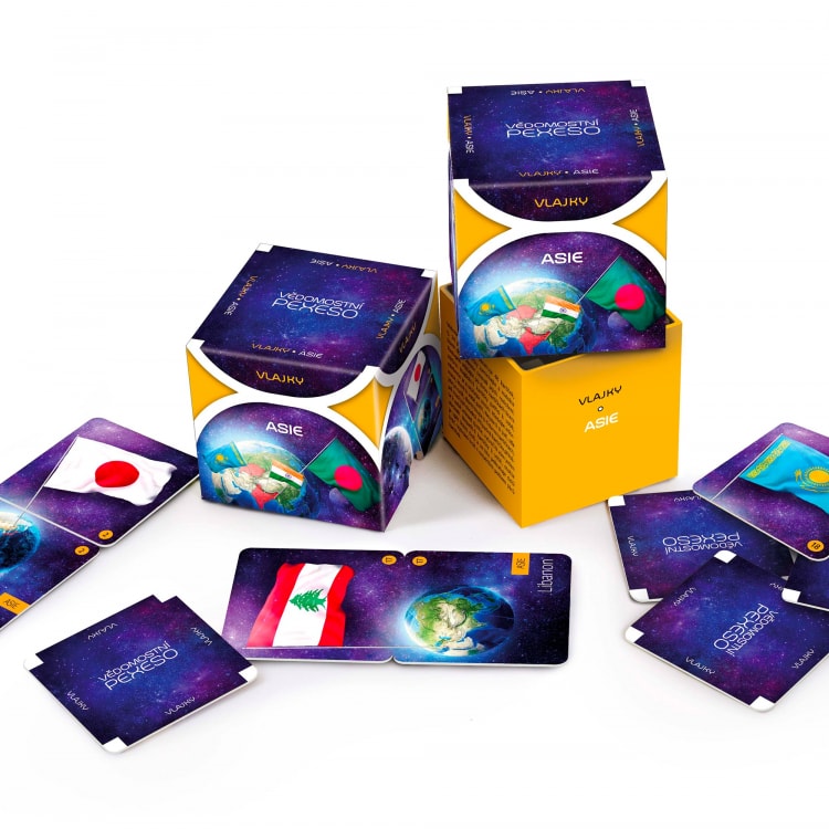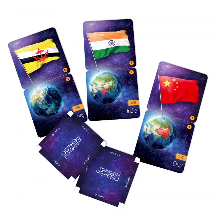 Vědomostní pexeso vychází z klasického pexesa. Nehledají se však dva stejné obrázky, ale dvě informace, které k sobě patří. Text je doplněn i motivem tvořícím celek, jakmile se dvě k sobě patřící kartičky položí vedle sebe či pod sebe. Díky vědomostnímu pexesu si můžete oživit znalosti a rozpomenout se na vlajky států Asie.