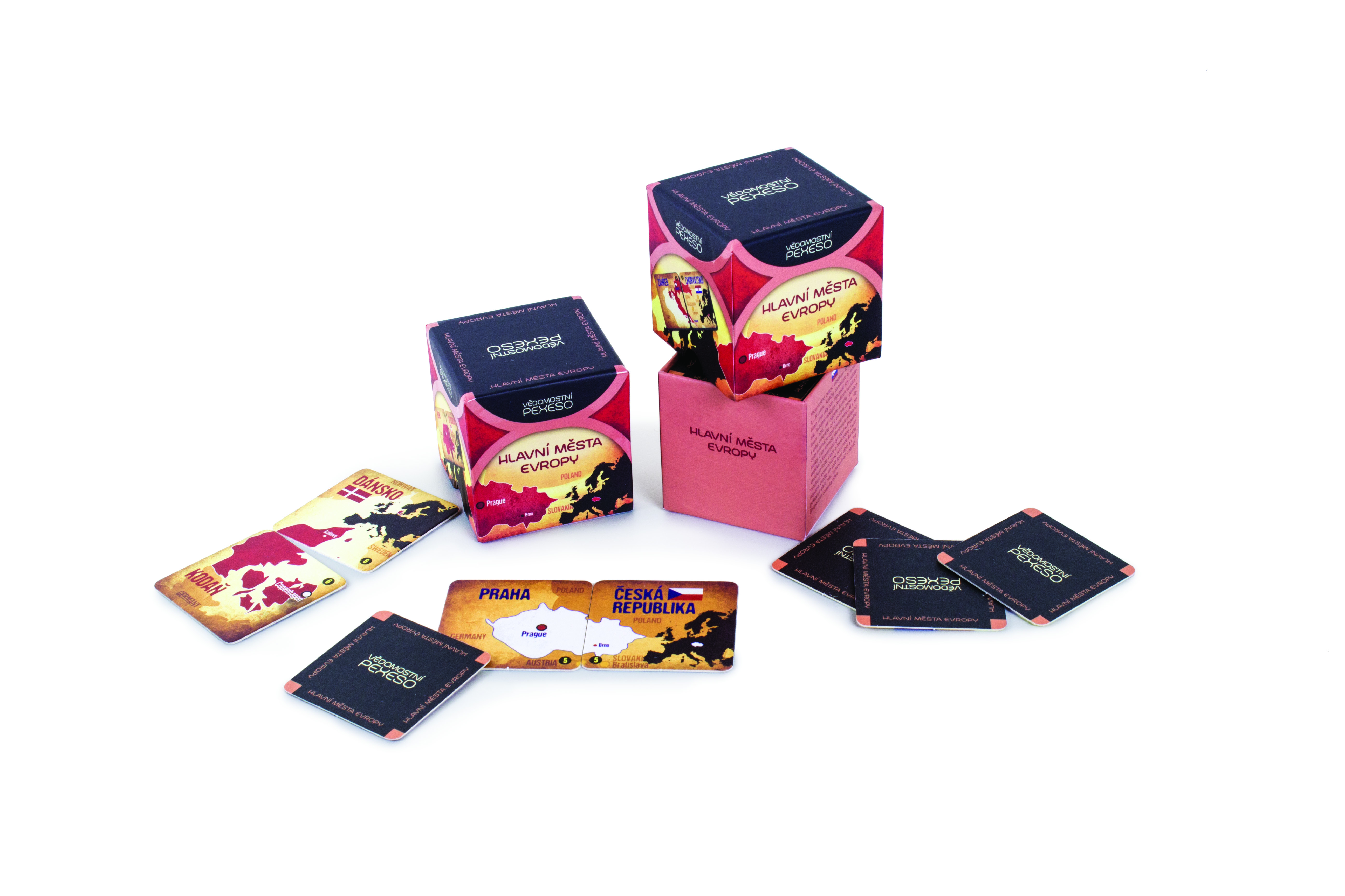 Vědomostní pexeso vychází z klasického pexesa. Nehledají se však dva stejné obrázky, ale dvě informace, které k sobě patří. Text je doplněn i motivem tvořícím celek, jakmile se dvě k sobě patřící kartičky položí vedle sebe či pod sebe. Díky vědomostnímu pexesu si můžete oživit znalosti hlavních měst Evropy.