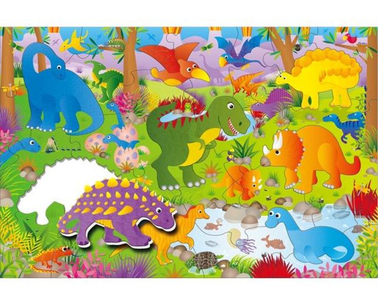 30 velkých dílků do sebe přesně zapadá a pomáhá vašemu dítěti ve zdokonalení motorických schopností. 8 dílků navíc znázorňuje samostatné dinosaury a tím pomáhájí dítěti v sestavení.