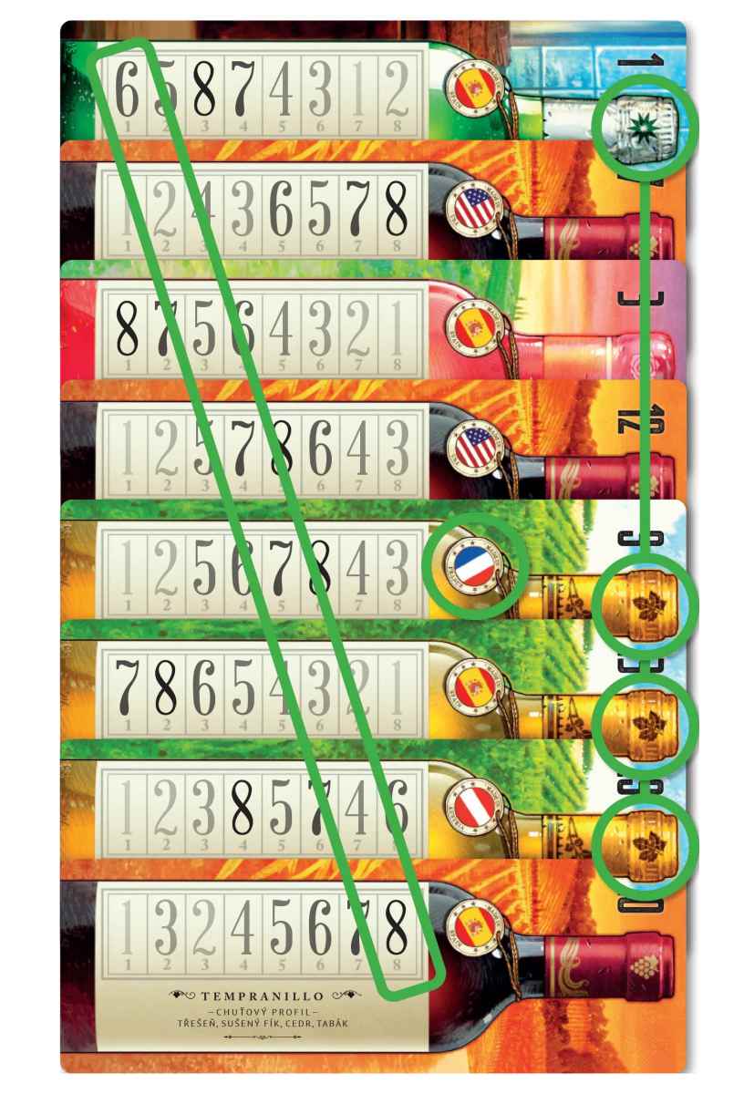 Vína do své sbírky získáváte prostřednictvím dražby. Čím vyšší nabídka, tím vyšší výběr, ale také slabší hodnoty do budoucna. Každou vydraženou láhev pak musíte opatrně zařadit do své řady ve sklípku tak, aby vám přinesla co největší zisk. Na pořadí vín totiž záleží, proto se vyplatí plánovat několik tahů dopředu.