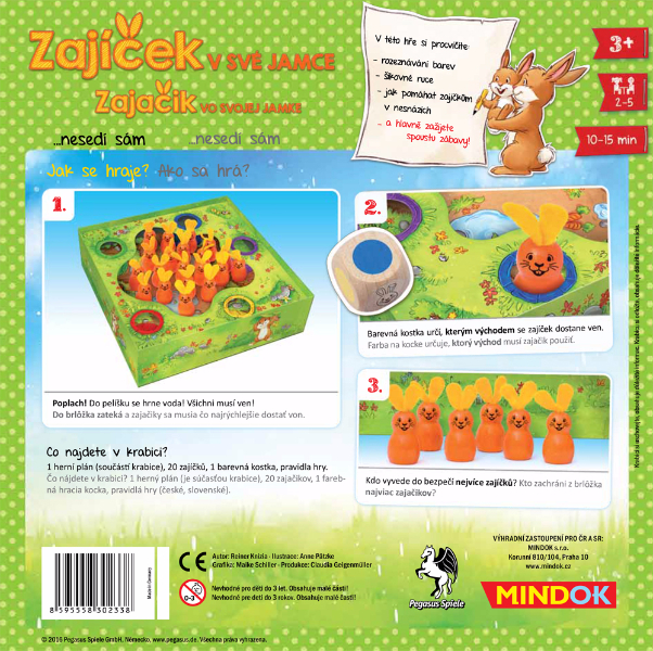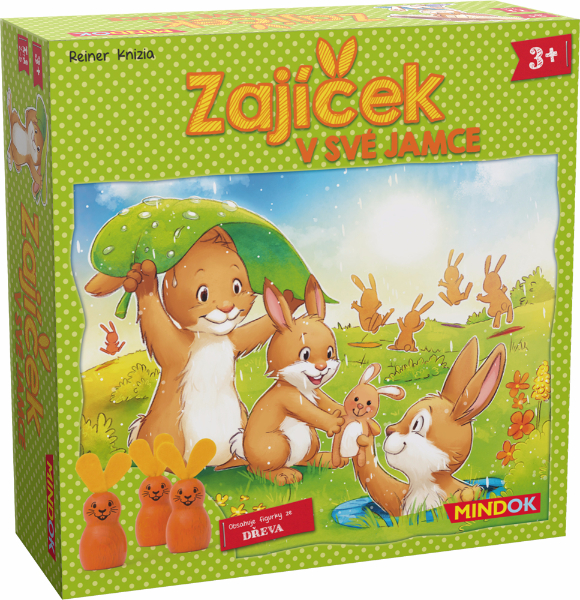 Poplach! Do pelíšku se hrne voda, všichni musí ven! Barevná kostka určí, kterým východem se zajíček dostane ven. Kdo vyvede do bezpečí nejvíce zajíčků?