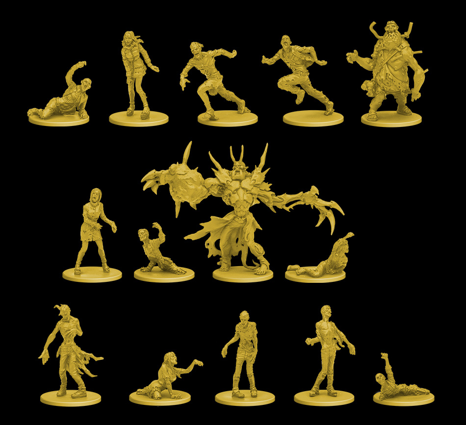 - 92 minis (32mm scale): 12 Survivors, 40 Skinner Walkers, 8 Skinner Fatties, 16 Skinner Runners, 15 Crawlers, 1 A-Bomb Abomination